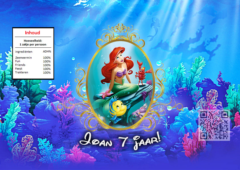 Nieuw! Chipswikkels in thema van kleine zeemeermin! Onze chipswikkels maken jouw feestje compleet. Ze zijn gepersonaliseerd met de naam en leeftijd van de jarige Job of Jet. In de wikkel zit een lekker zakje chips of popcorn en je kunt kiezen uit Lays partymix of een mix van zoete en zoute popcorn. Laat ons gauw weten hoe je heet en hoe oud je wordt!