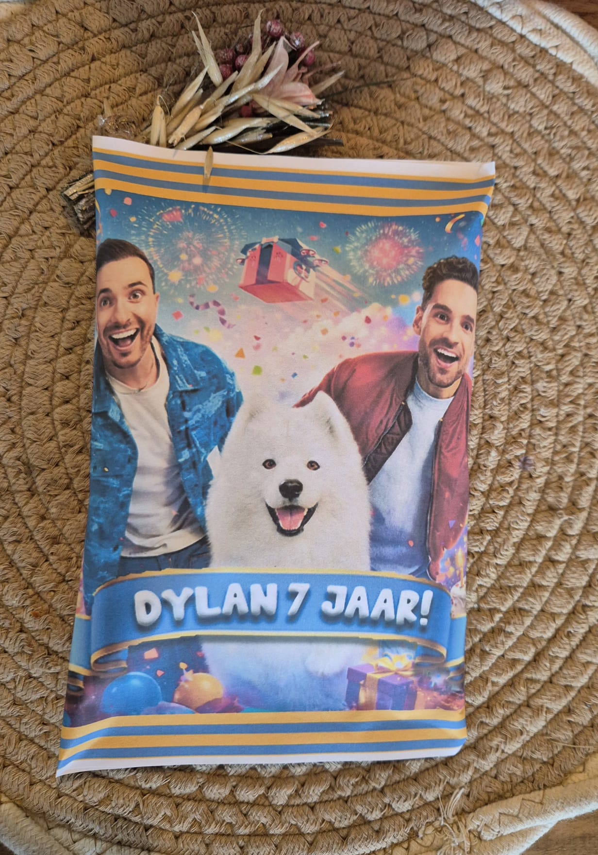 Op zoek naar een vrolijke en avontuurlijke traktatie waar kinderen direct enthousiast van worden? Deze chips traktatie is perfect voor fans van humor, challenges en natuurlijk de allerleukste hond van Nederland!