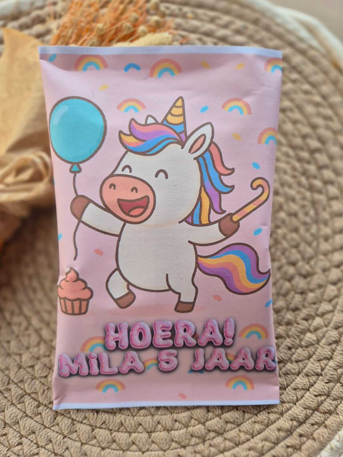 Unicorn Chipswikkel – Gepersonaliseerde Traktatie met Naam