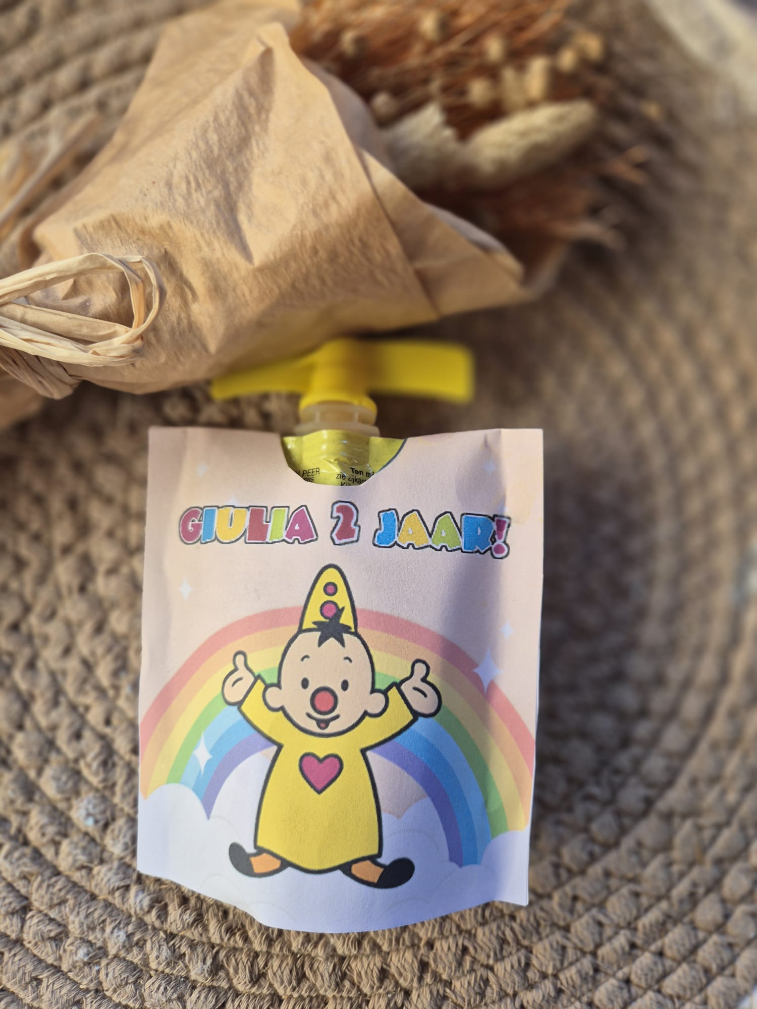 Laat ons weten welke naam en leeftijd erop mogen en wij personaliseren de wikkel speciaal voor jouw jarige Bumba-fan. Verkrijgbaar met of zonder knijpfruit, dus klaar om direct uit te delen.