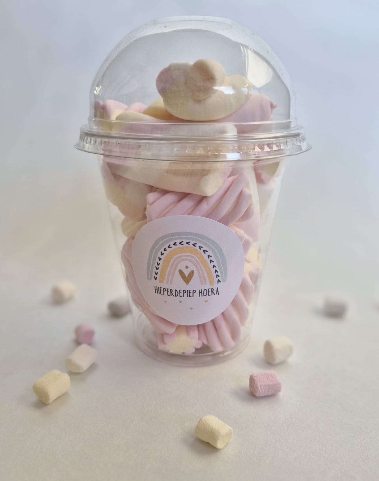 Elke beker is voorzien van een persoonlijke sticker, die in sommige varianten ook te personaliseren is met bijvoorbeeld naam of leeftijd. Dat maakt jouw traktatie nét even specialer en perfect afgestemd op de jarige.