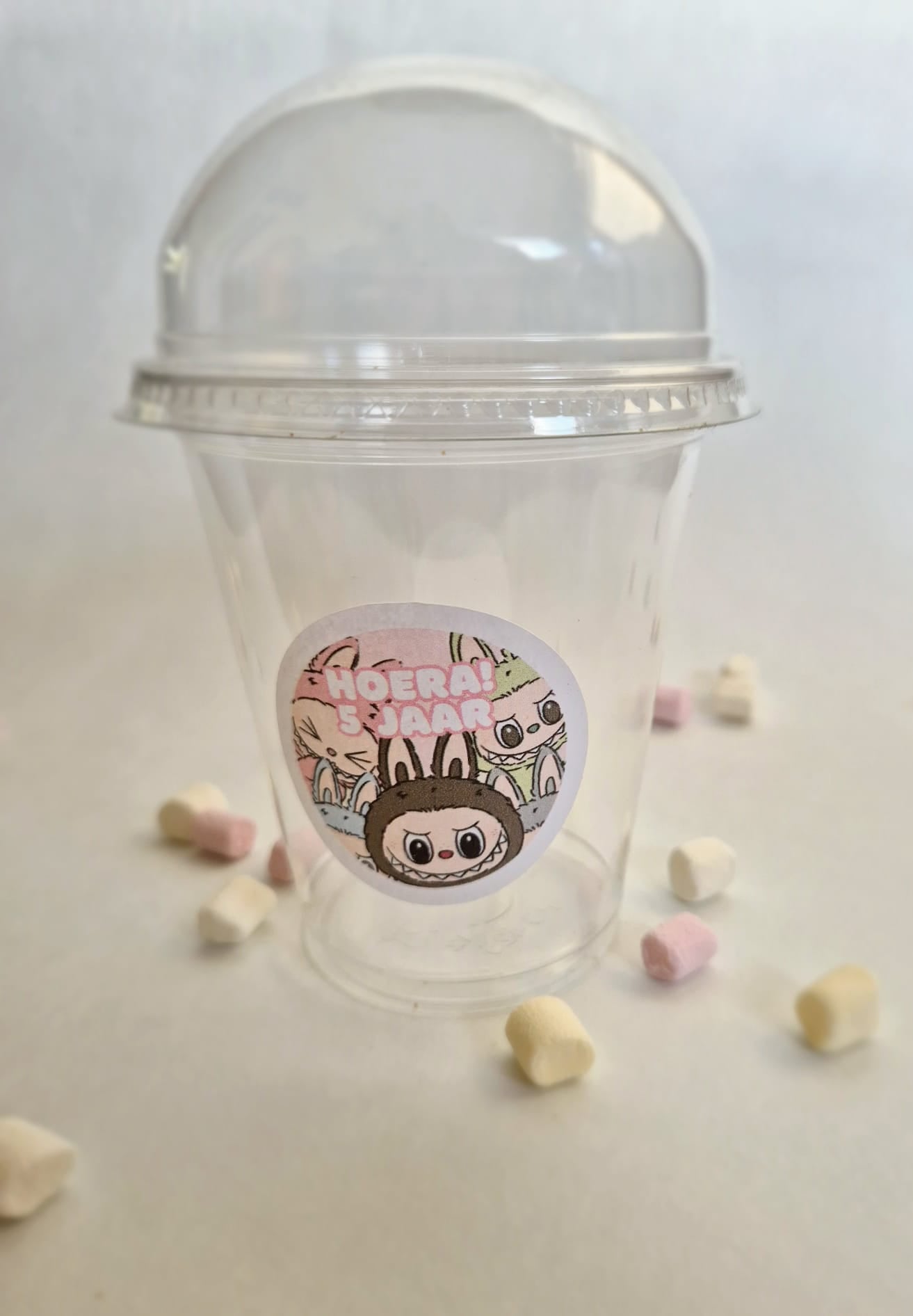 Maak trakteren leuk, persoonlijk en eenvoudig met deze feestelijke traktatie beker met deksel – een echte blikvanger op elk verjaardagsfeest of schoolmoment.