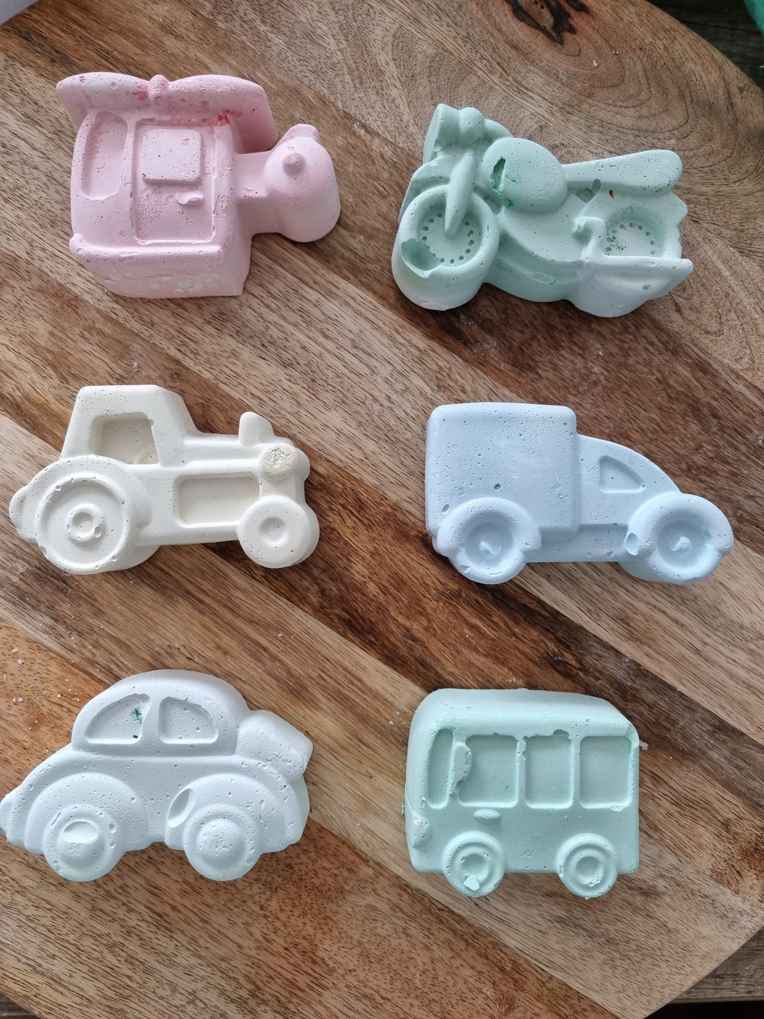 Leuk om te geven, leuk om te krijgen! Bestel nu onze handgemaakte stoepkrijtjes in voertuigen thema, zoals een helikopter, auto of motor. Geef jouw feestje een uniek extraatje. De krijtjes zijn los te bestellen, mét of zónder snoepje. Kies je voor krijtjes mét een snoepje, dan verpakken we dit samen in een cellofaantje, afgewerkt met gekleurd strikje.